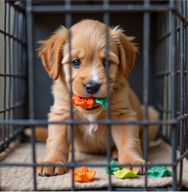 Introducing crate training puppies before they head to their new homes sets them up for success. It gives them a safe, comfy space that they can retreat to when they feel overwhelmed, which helps them adjust more easily. Plus, it makes house training so much smoother since they naturally avoid soiling their sleeping area. Familiarisation with the crate is a great way to make travel and vet visits less stressful and helps puppies make a smooth transition from my home to their new family life!