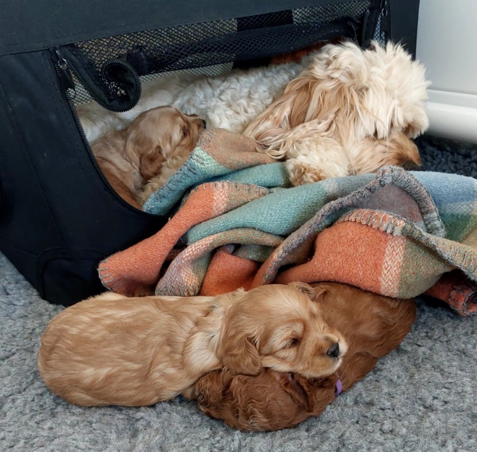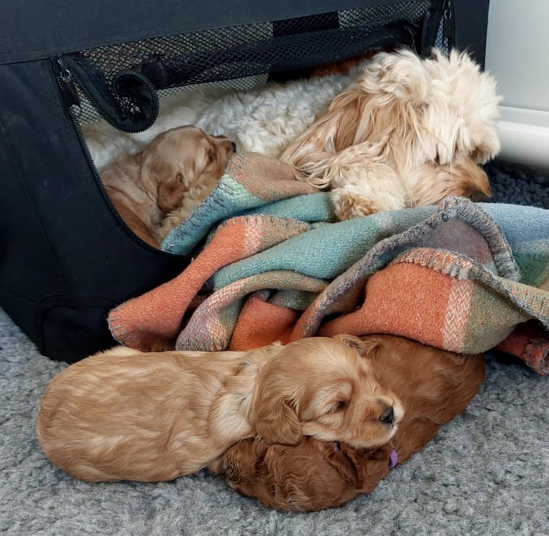 Crate conditioning This week marks the beginning of crate conditioning. The crate is placed inside the play area with its door open, inviting exploration rather than confinement. Inside, soft bedding, a familiar scent cloth, and a Snuggle Puppy create a cosy, welcoming space. Puppies wander in at their own pace, often drawn to the comfort of the Snuggle Puppy. Short, open‑door naps help them build positive associations with the crate, teaching that it’s a safe retreat. I also note which pups happily seek solitude and which prefer the company of their littermates — early clues to their emerging personalities.