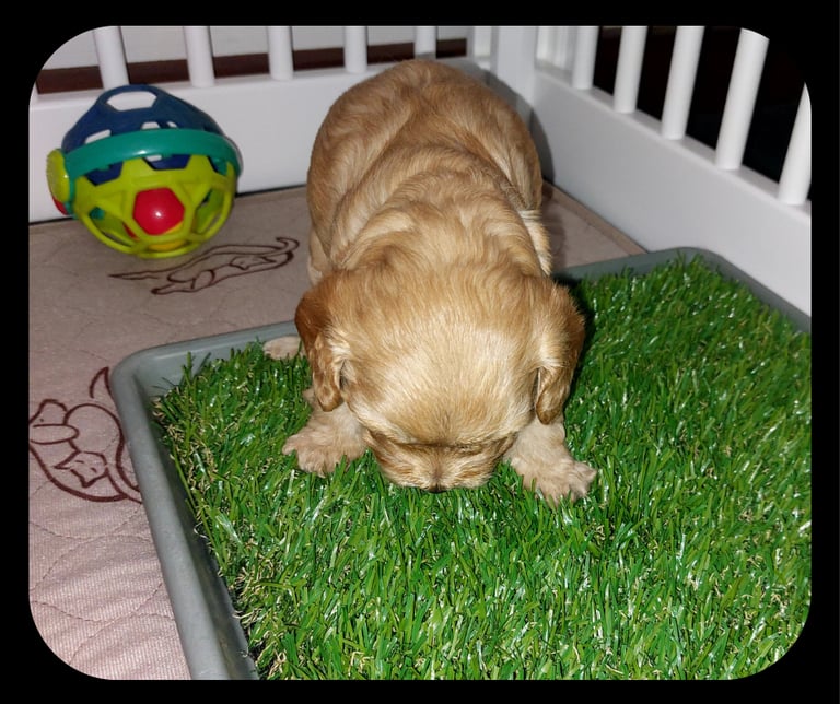 Elimination: The pups are starting to figure out that sleeping spots and toilet spots shouldn’t be the same thing. They toddle off with great determination toward the fake grass pee-pad. It’s a bit hit‑and‑miss right now but watching them try is both endearing and hilarious — the first wobbly steps toward instinctive cleanliness.