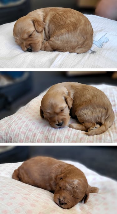 Week 2 is a reminder of how quickly puppies change. In just 14 days, they’ve gone from helpless neonates to determined little crawlers. Their eyes will open soon, and with that comes a whole new level of interaction. Every weigh‑in, every ENS exercise, and every cuddle is part of shaping the healthy, well‑adjusted pup you’ll one day welcome home. It may look like all wiggles and squeaks now, but these are the building blocks of the confident companion waiting for you.