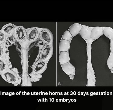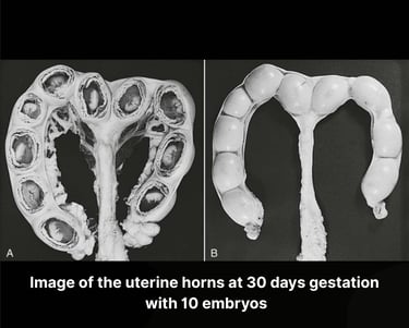 The canine uterus is Y-shaped, with each horn offering a safe, nourishing cradle for developing puppies. Nestled within fluid-filled sacs, each fetus begins as a bean-like shape, slowly unfolding into spines, limbs, and facial contours.