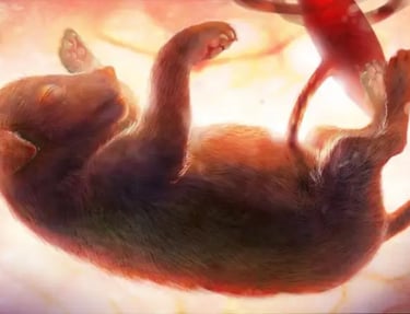 By week eight, Poppet’s puppies are looking more like tiny dogs than embryos. Their skeletons are fully formed, their organs are functioning, and their fur has grown in—complete with the markings that will make each one unique. Inside her belly, they’re wriggling and stretching, practicing movements they’ll soon use in the outside world.